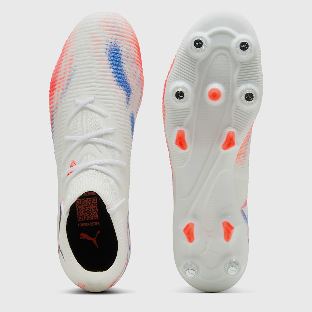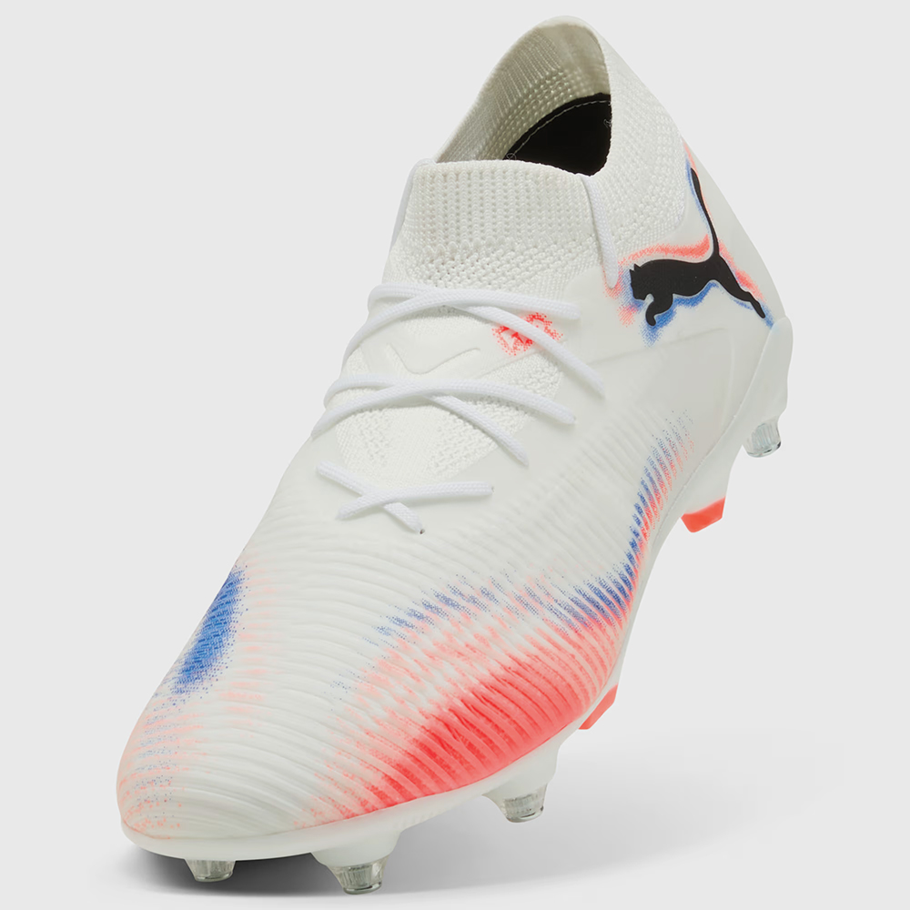 A boot that fits different, made for players who make a difference. Playmakers, unleash your creativity with the FUTURE 8 PRO. In the upper, a highly elastic material is combined with a stretchy knitted collar for a flexible, secure, and supportive fit. And when you want to showcase your skill with the ball, raised mesh lines with a GripControl finish add grip, and control. With the all-new FLEXGILITY outsole for 360-degree agility, you can move between the lines and create beyond limits.
